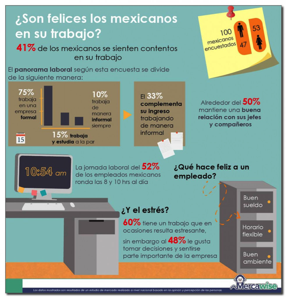 Como parte del desarrollo pleno de todas las personas en sociedad, llega el momento de buscar y elegir un trabajo. Puede ser que haya muchas opciones y que las aptitudes y formación de cada persona les ofrezcan posibilidades diferentes pero, al final, el objetivo primordial de todas las personas es el bienestar y un mejor nivel de vida. Esto no sólo consiste en obtener más dinero a cambio del trabajo que se desempeña, sino de muchos otros factores. Es por ello que en Mercawise realizó una encuesta para conocer qué y cuáles son las cosas más importantes para los mexicanos en términos de satisfacción laboral.